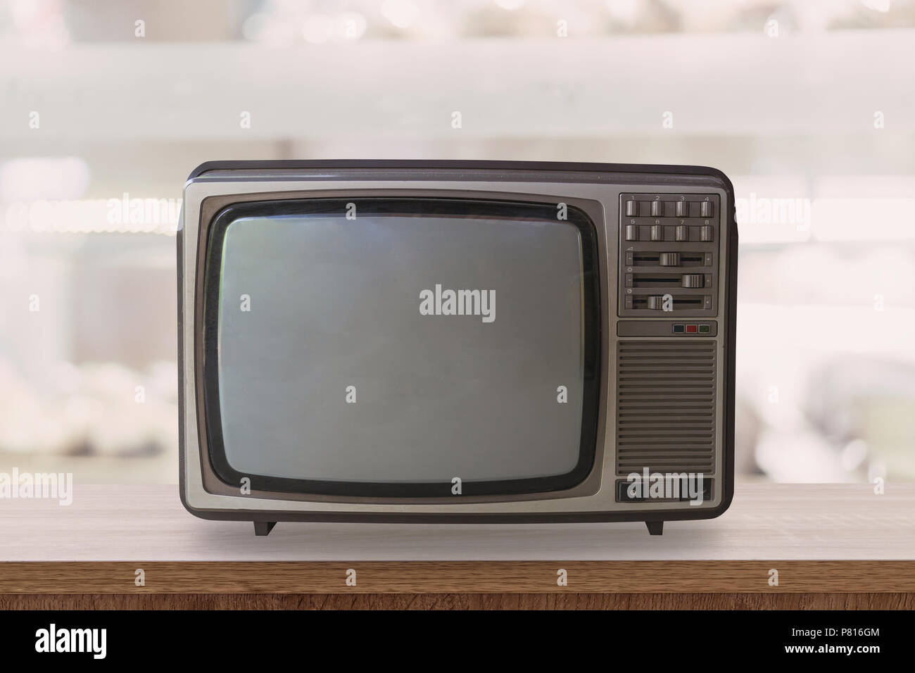Vintage Tv Box On Wooden Table With Blur Background Stock Photo Alamy