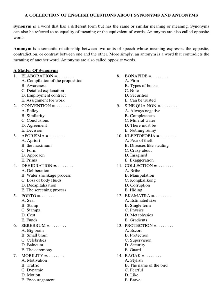 Soal Sinonim Dan Antonim Pdf Nature